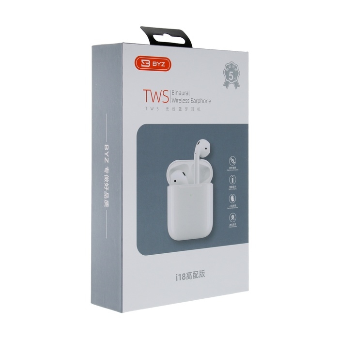 Наушники BYZ i18 Youth version, беспроводные, вкладыши, микрофон, ВТ 5.0, 300 мАч, белые