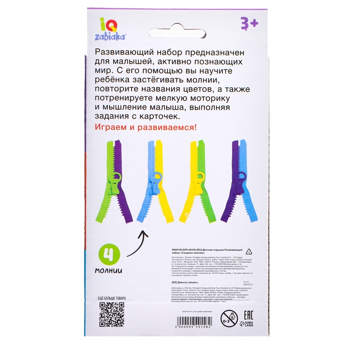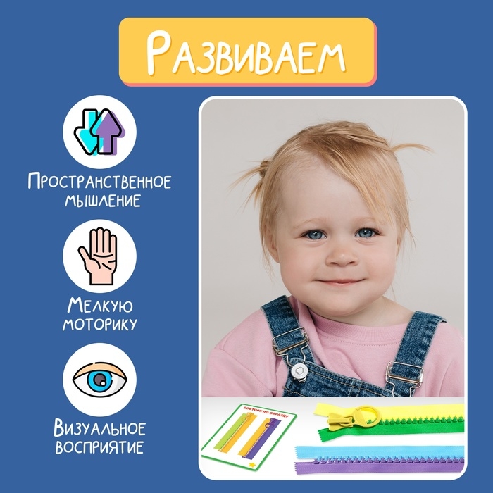 Развивающий набор «Соедини молнии» предназначен для малышей, активно познающих мир. С его помощью ребёнок научится самостоятельно застёгивать молнии, повторит названия цветов, а также потренирует моторику и мышление, выполняя задания с карточек.