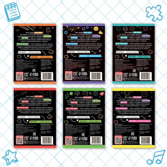 Набор книг Soft Skills «Развитие навыков в задачках и играх», 6 шт., по 44 стр., 8+