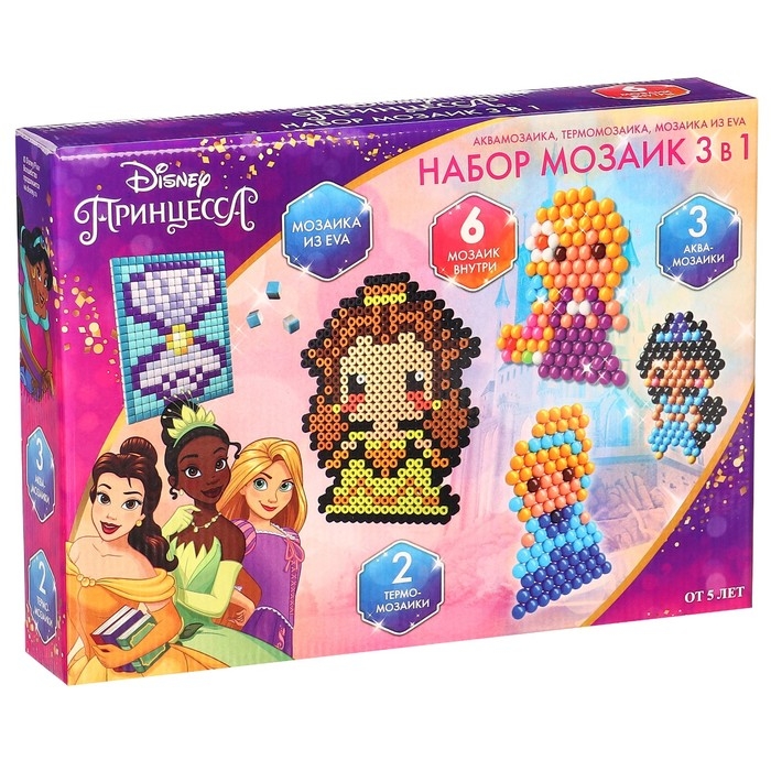 Набор мозаик 3 в 1 «Принцессы», Авквамозайка, Термомозайка и мозаика из EVA, 4+