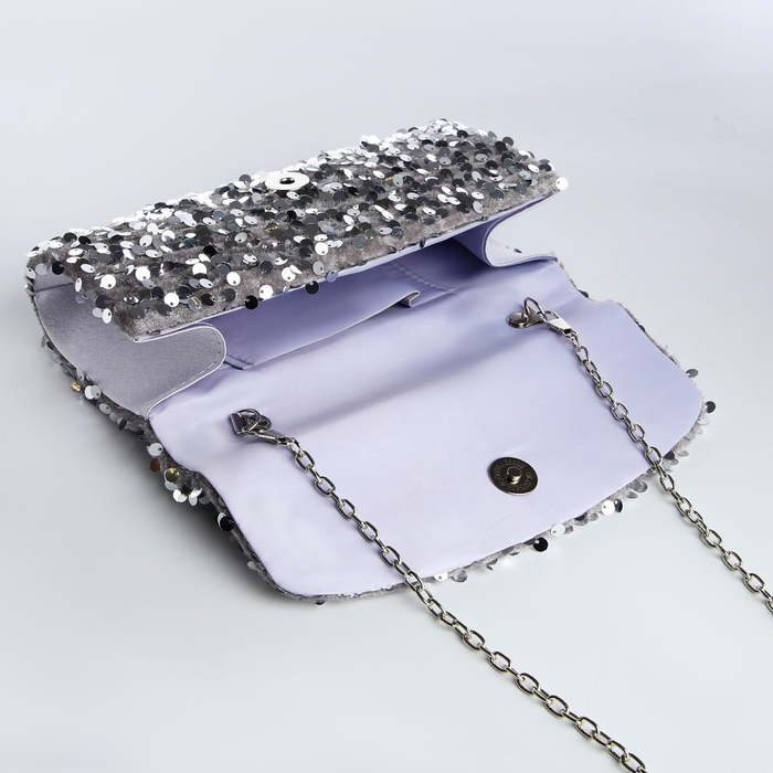 Сумка-клатч на магните, цвет серебряный