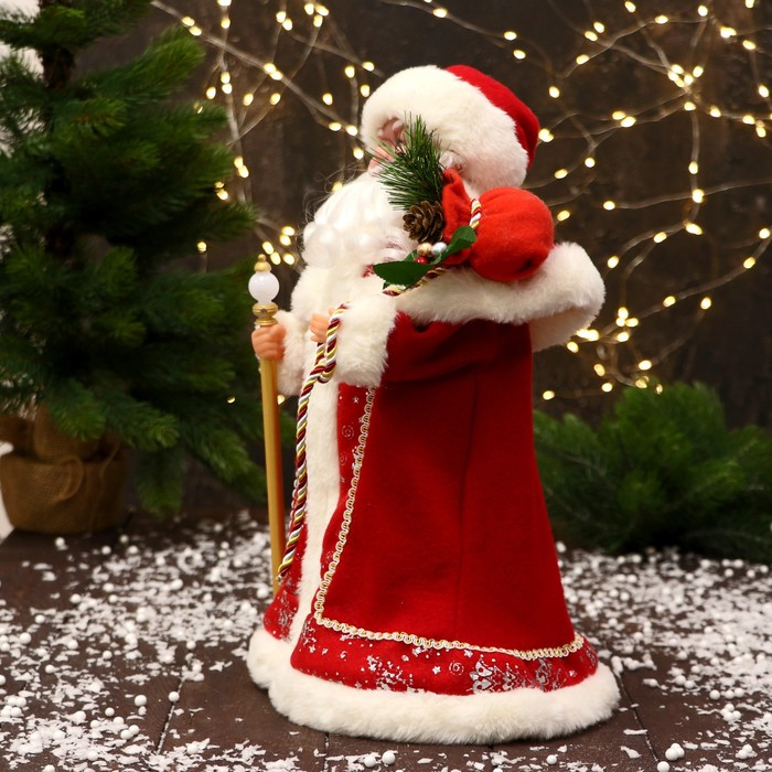 Дед Мороз "Красная шуба, с посохом" 35 см