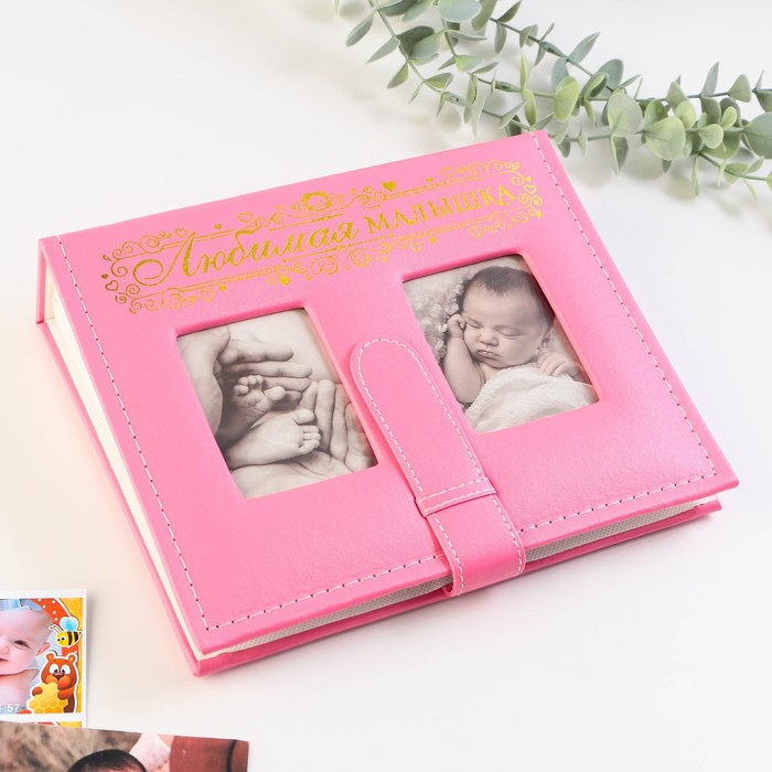 Фотоальбом на 200 фото с 2 местами под фото на обложке "Любимая малышка", экокожа