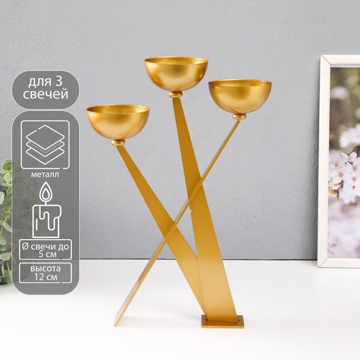 Подсвечник металл на 3 свечи d=8 см "Николь" 23х8х33,5 см