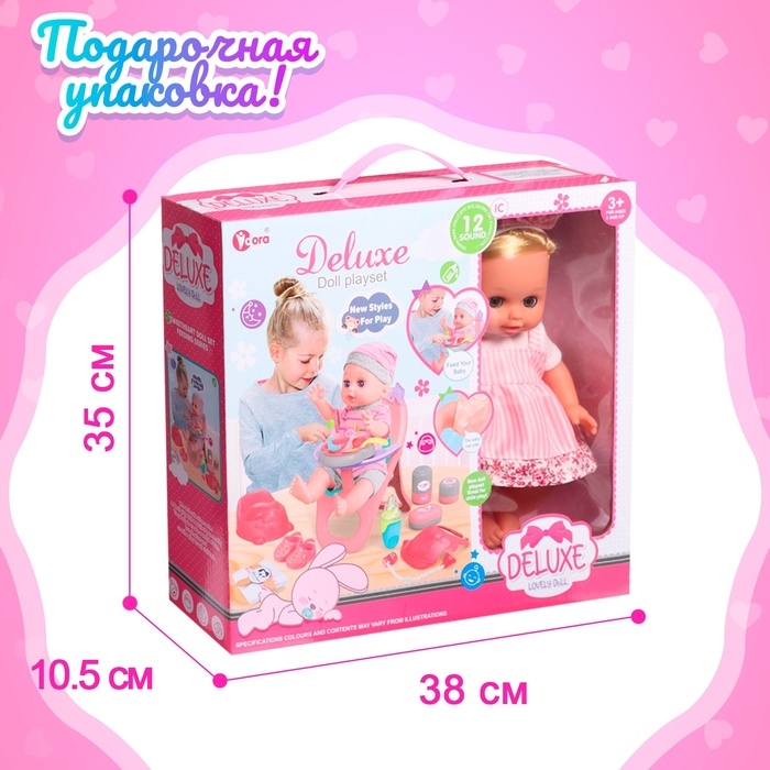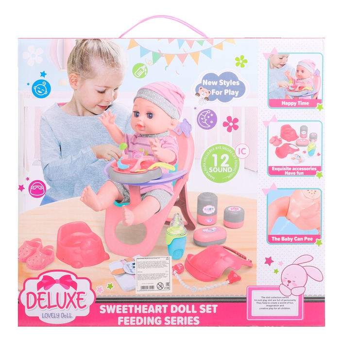 Пупс функциональный «Анечка», пьёт, писает, с набором аксессуаров, со стульчиком для кормления