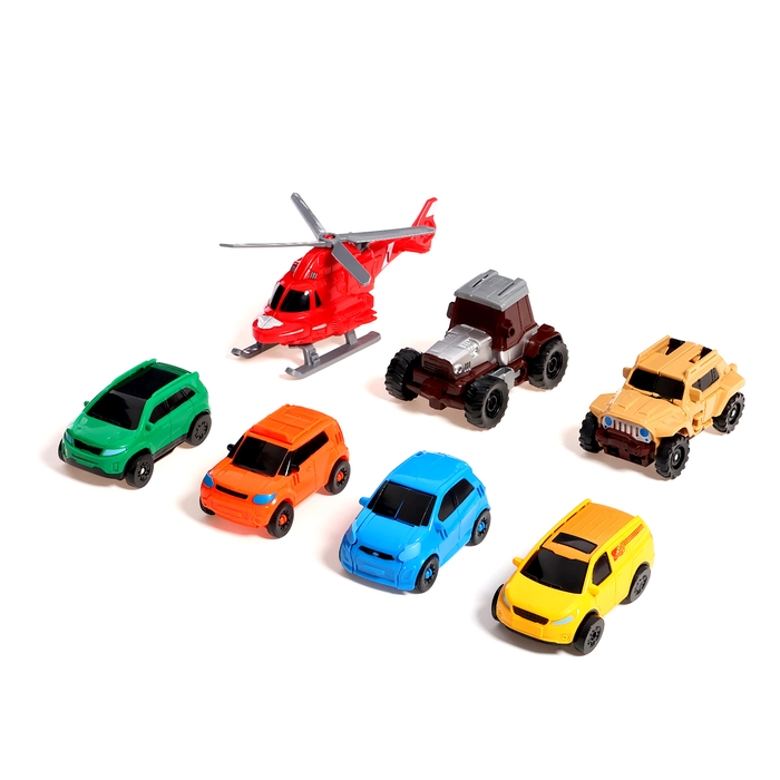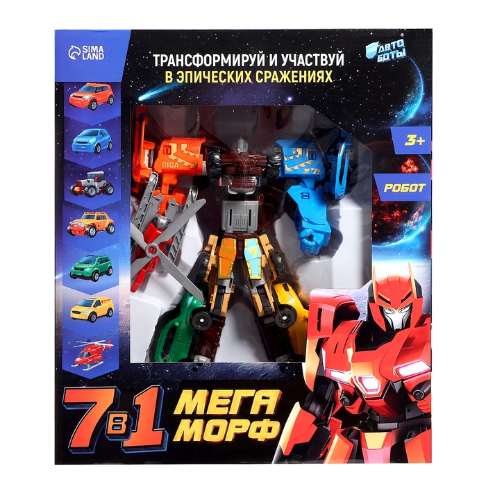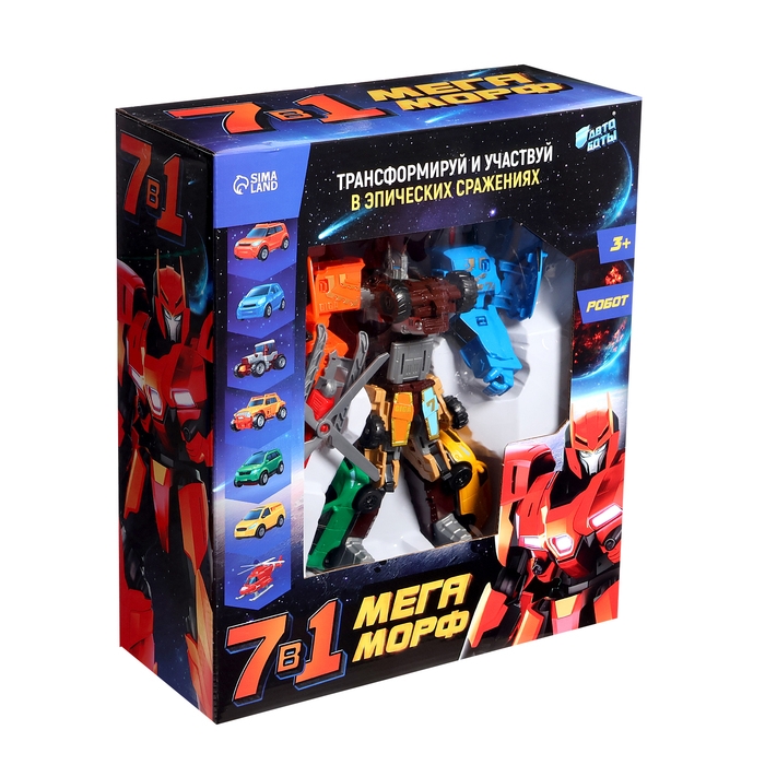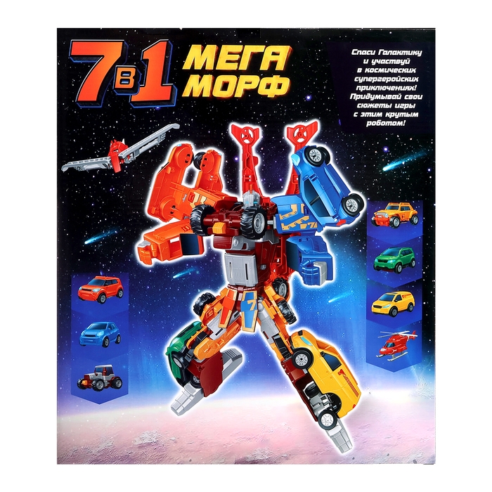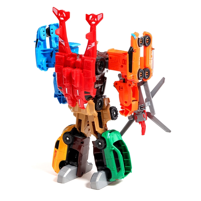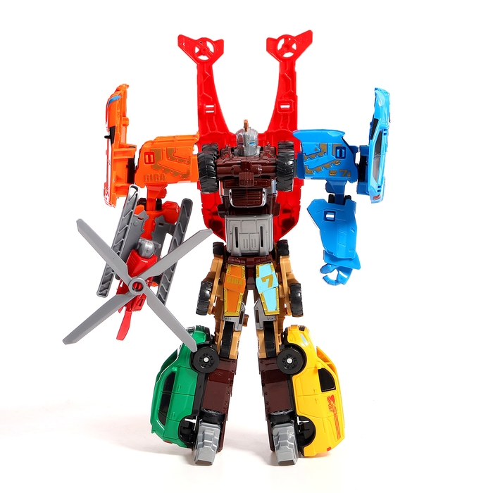 - 7 в 1: 7 роботов-машинок собираются в одного большого робота.
