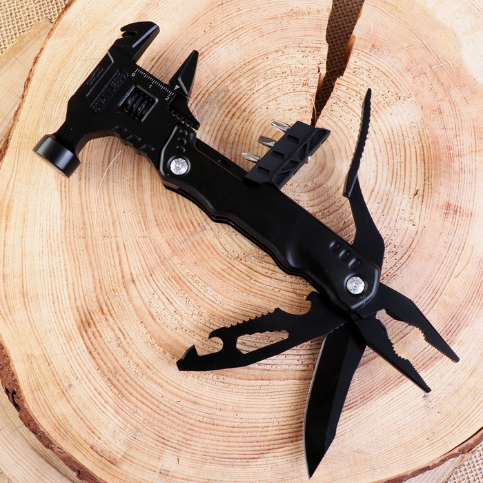Мультитул 13в1 с плоскогубцами и разводным ключом, черный