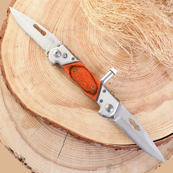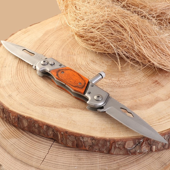 Нож двухклинковый складной "Флиппер" 20,3см, клинок 87мм/2,2мм+ фонарик