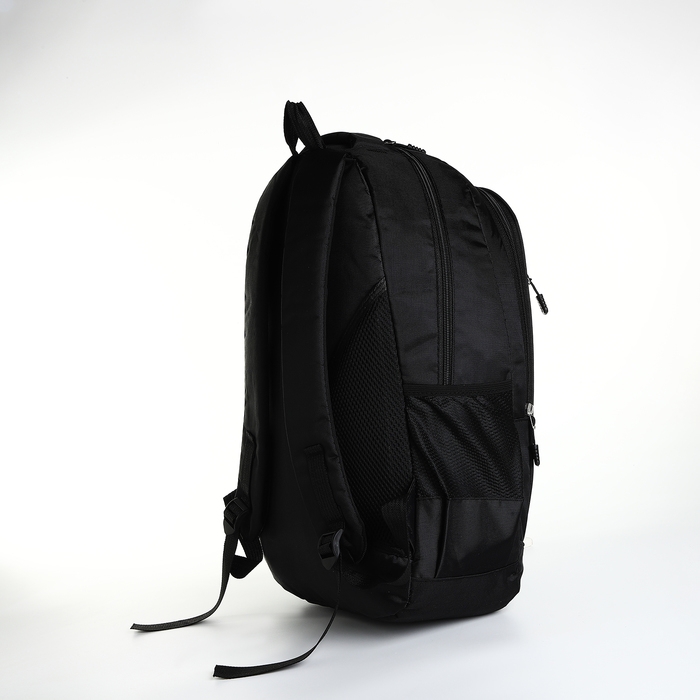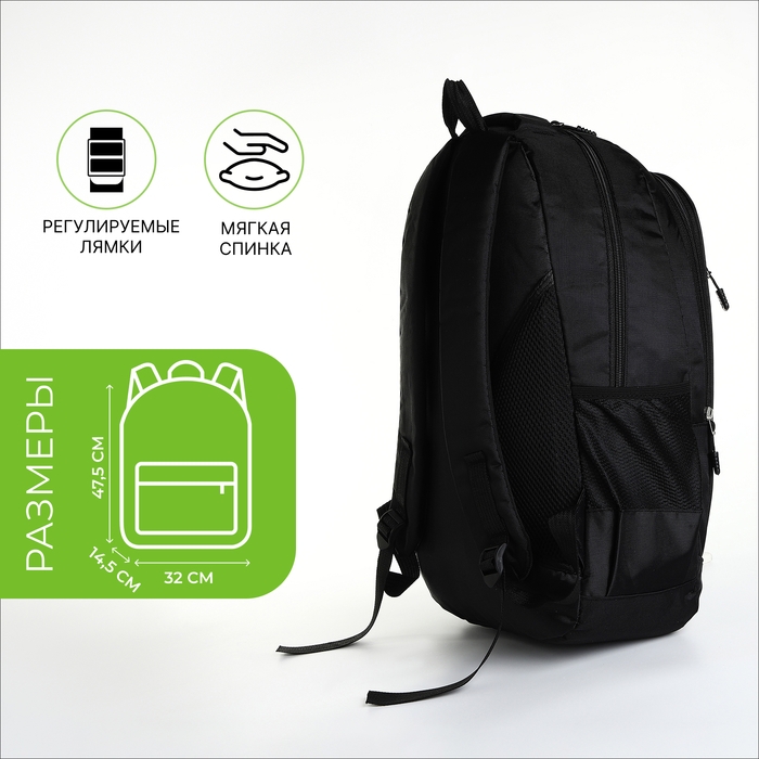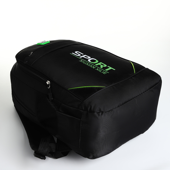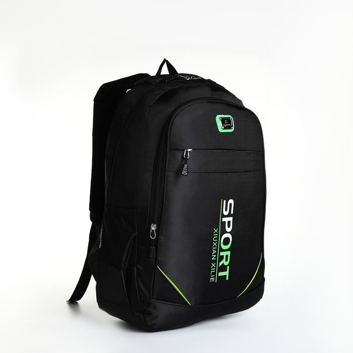 Рюкзак школьный из текстиля на молнии, 4 кармана, цвет чёрный/зелёный