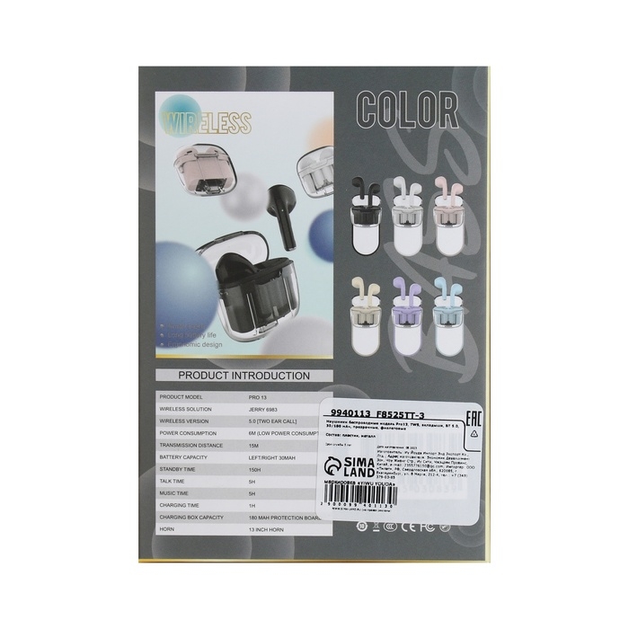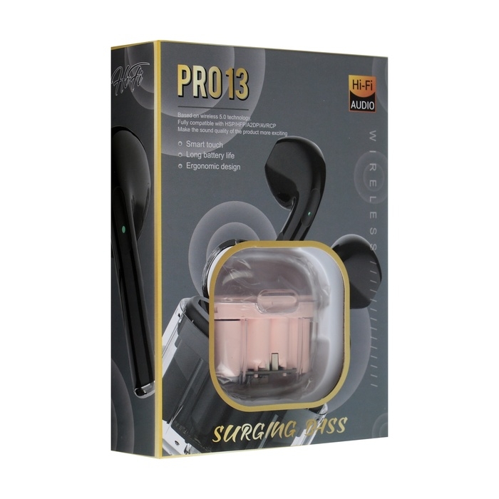 Наушники беспроводные Mybit Pro13, TWS, вкладыши, BT 5.0, 30/180 мАч, прозрачные, фиолетовые