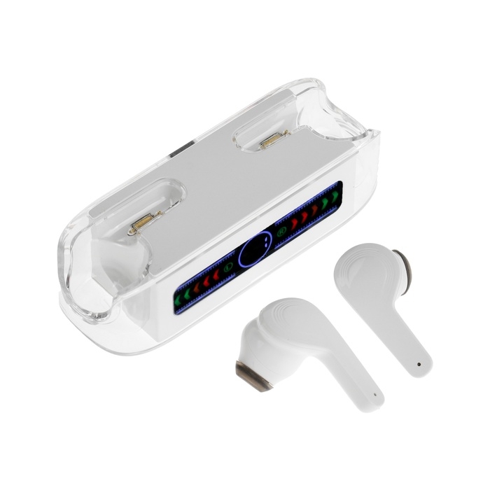 Наушники беспроводные KM12, TWS, вкладыши, BT 5.0, 30/200 мАч, прозрачные, белые