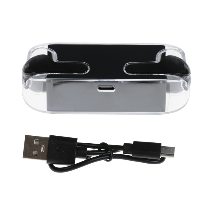 Наушники беспроводные KM12, TWS, вкладыши, BT 5.0, 30/200 мАч, прозрачные, чёрные