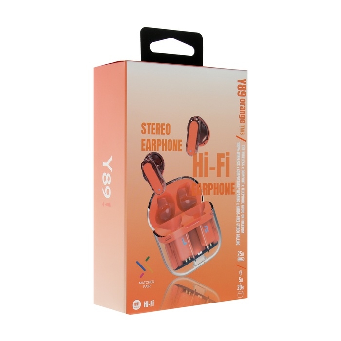 Наушники беспроводные Y89, TWS, вкладыши, BT 5.3 , 30/300 мАч, прозрачные, оранжевые