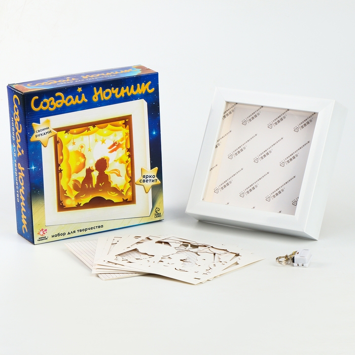 С таким набором для творчества ребёнок своими руками сделает уникальный ночник, который будет его радовать перед сном. Сборка ночника с картинкой внутри поможет развить творческие способности ребёнка. А ещё подарит радость и хорошее настроение всей семье. Создайте волшебную атмосферу!