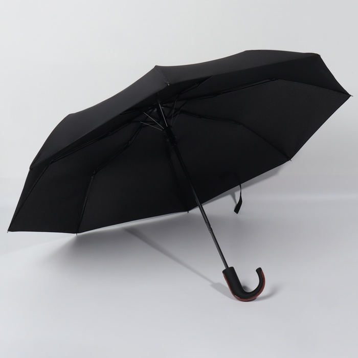 Зонт полуавтоматический «Гром», эпонж, 3 сложения, 8 спиц, R = 48/55 см, D = 110 см, цвет чёрный