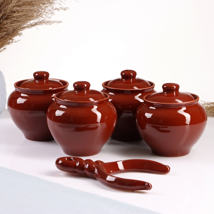 Набор горшков "Подарочный с ухватом" 4х0,85л, стандарт