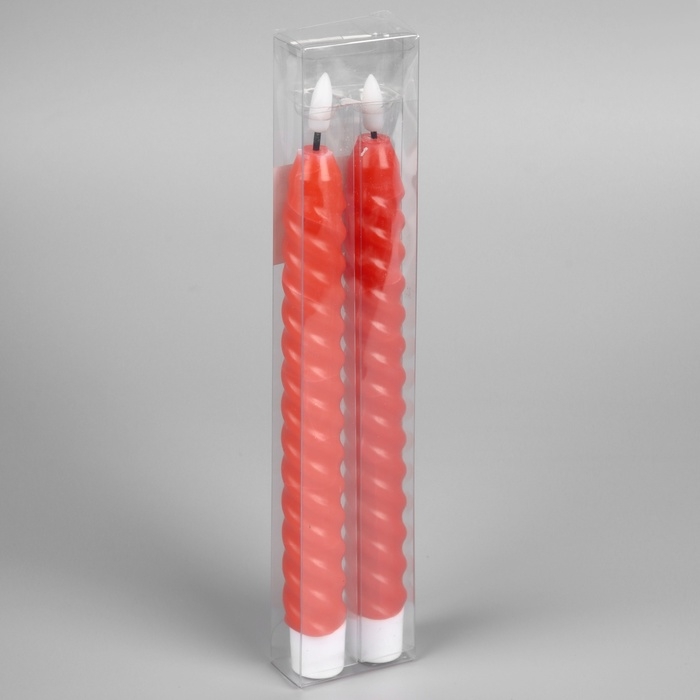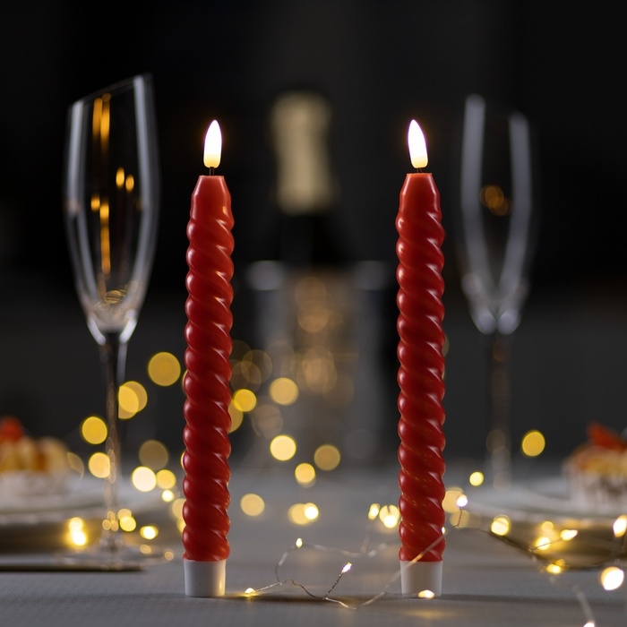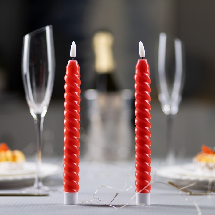 Набор светодиодных свечей, красные, 2 × 25 × 2 см, пластик, воск, батарейки АААх2 (не в комплекте), свечение тёплое белое, 2 шт.