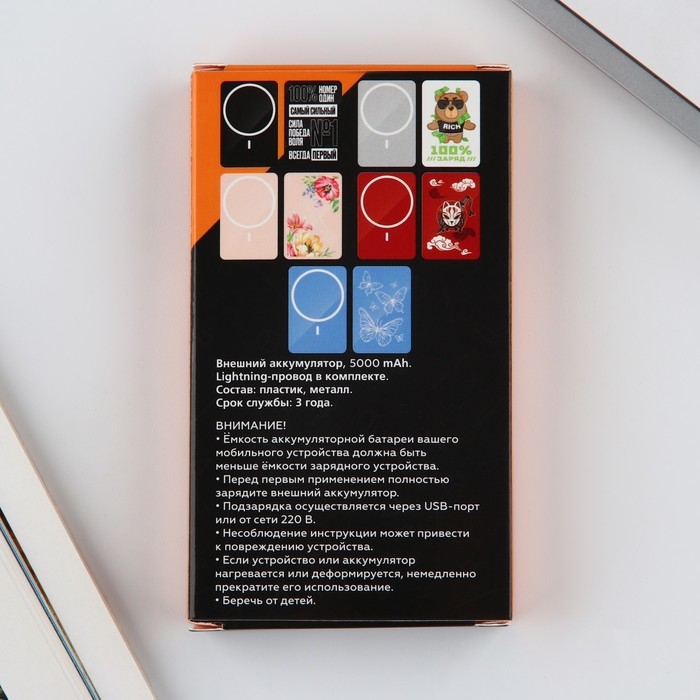 ВАЖНО! Есть возможность использовать для заряда любого телефона (необходим свой шнур), но ёмкость аккумуляторной батареи должна быть меньше ёмкости зарядного устройства (5000 mAh). В комплекте идёт отдельный шнур для разъема USB и micro USB.