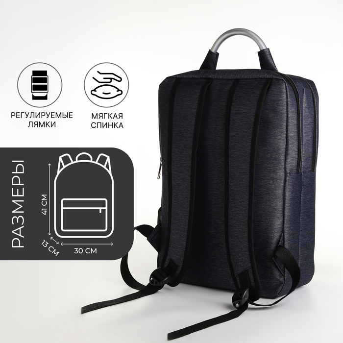 Рюкзак городской на молнии, 2 кармана, с USB, цвет синий