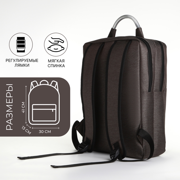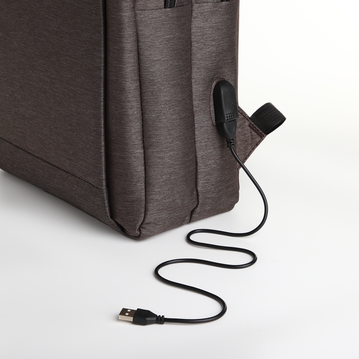 Рюкзак городской на молнии, 2 кармана, с USB, цвет коричневый