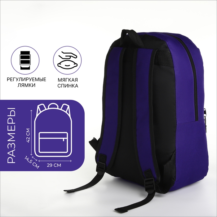 Рюкзак школьный на молнии, наружный карман, цвет фиолетовый