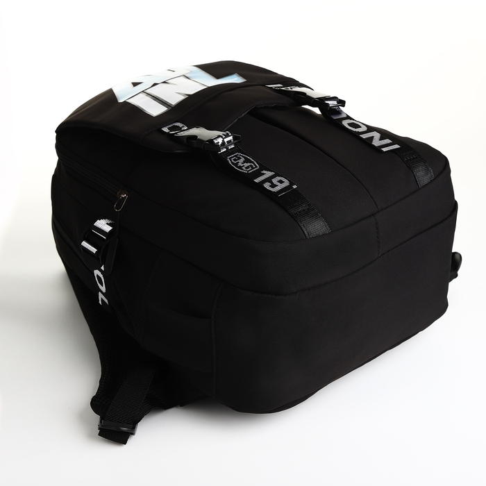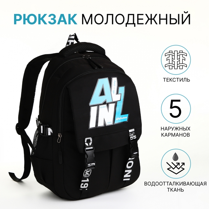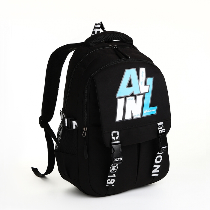 Рюкзак школьный из текстиля на молнии, 5 карманов, цвет чёрный