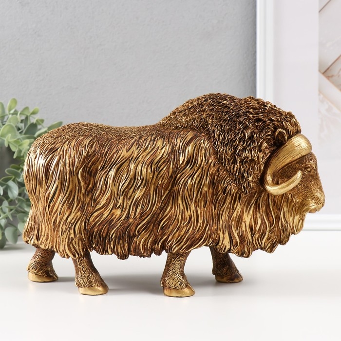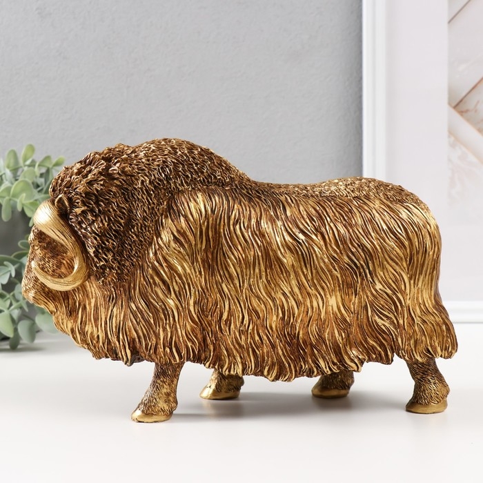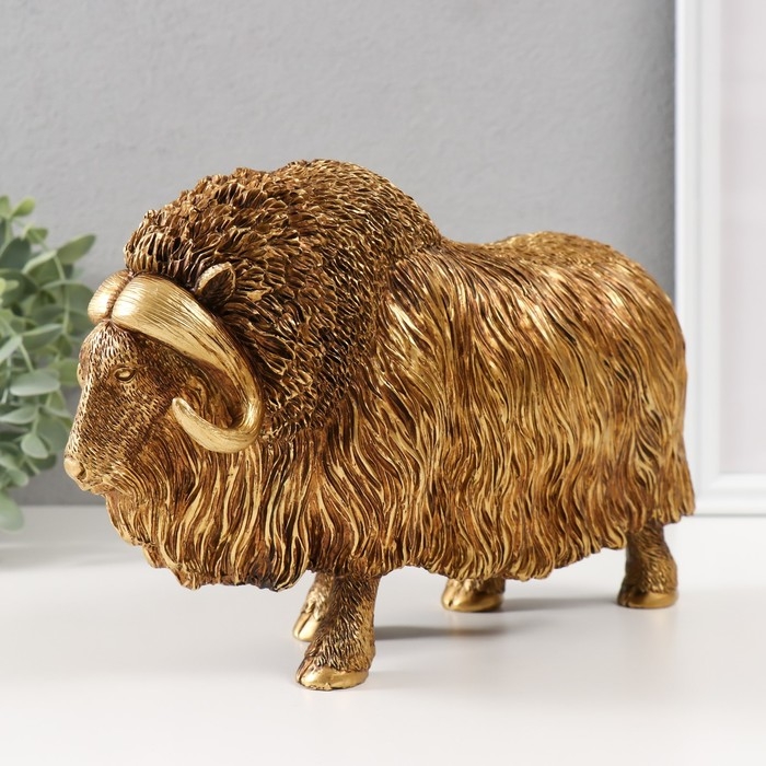Сувенир полистоун "Овцебык" золотой 27х9,5х16,8 см
