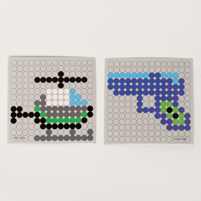 - Разместите схему под прозрачной основой. С помощью пинцета выложите на основе детали соответствующих цветов.