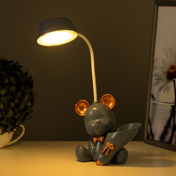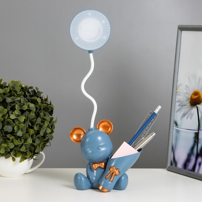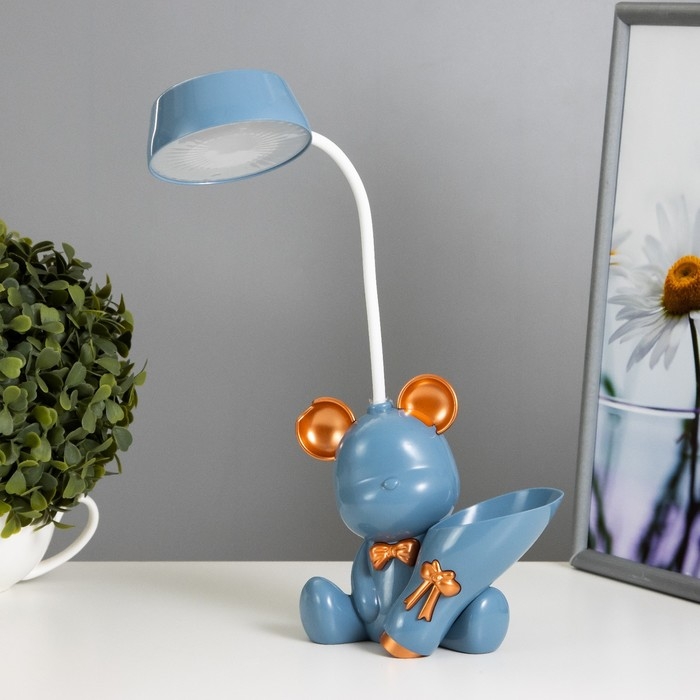 Настольная лампа с точилкой "Мишка" LED 2Вт 3000К USB АКБ синий 15х14х30 см