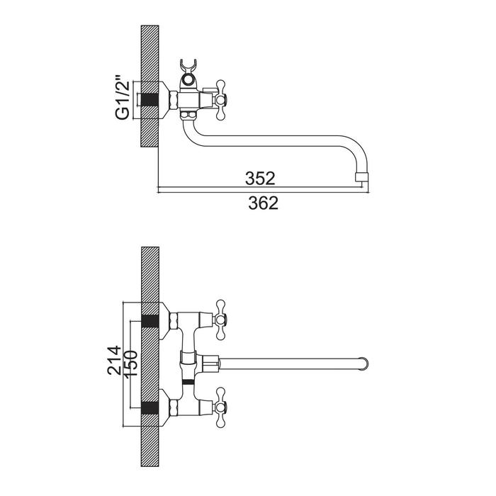 Cмеситель для ванны Accoona A87170, двухвентильный, с душевым набором, силумин, хром