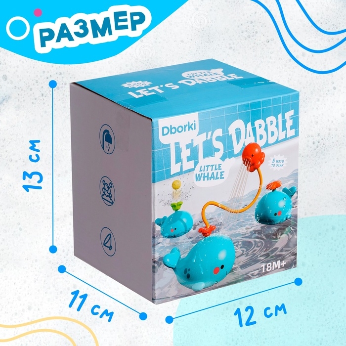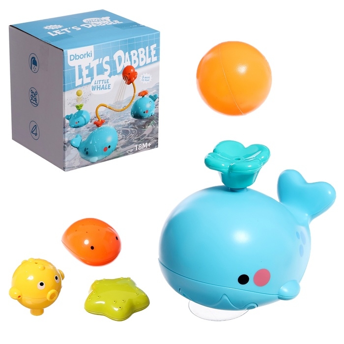 Фонтанчик для ванны «Китенок», 4 насадки, 1 шарик, работает от батареек