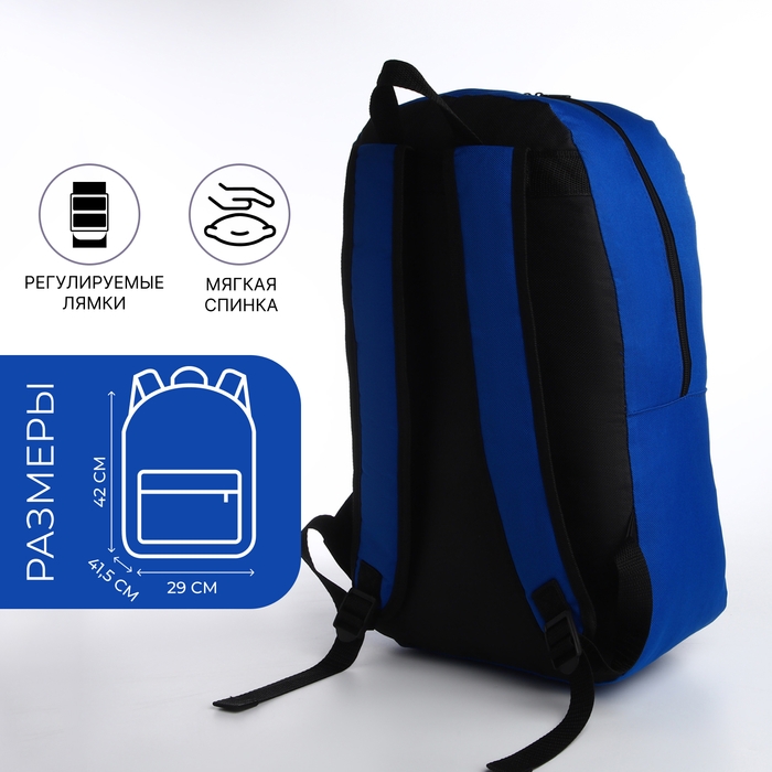 Рюкзак школьный на молнии, наружный карман, цвет синий