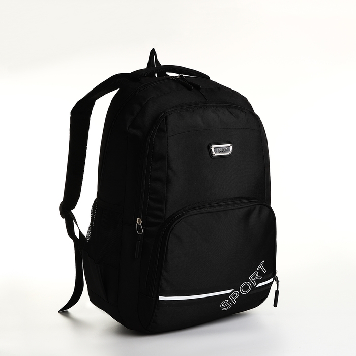 Рюкзак школьный на молнии, 4 кармана, цвет чёрный/серый