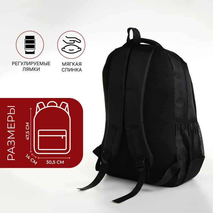 Рюкзак школьный на молнии, 4 кармана, цвет чёрный/красный