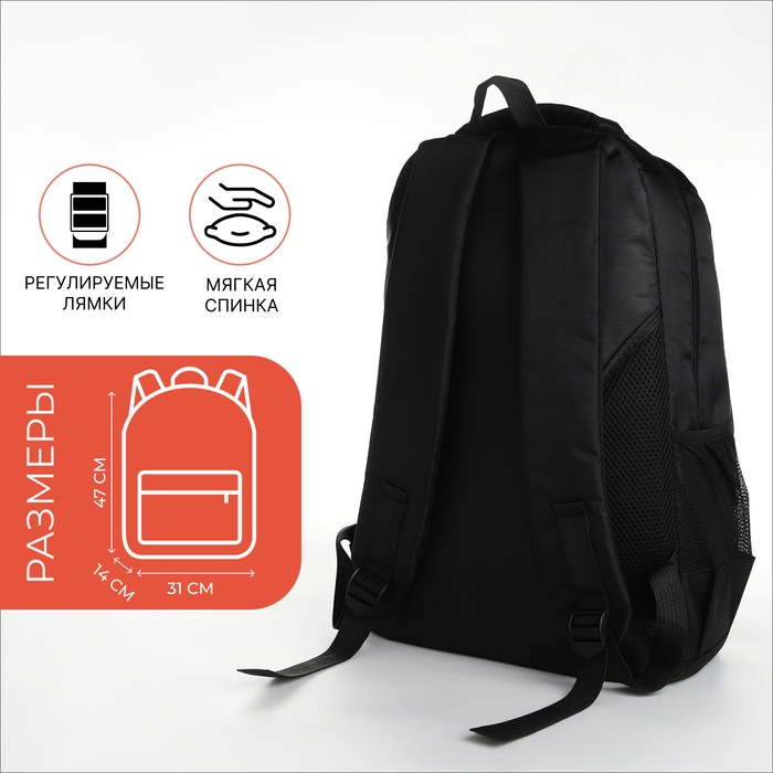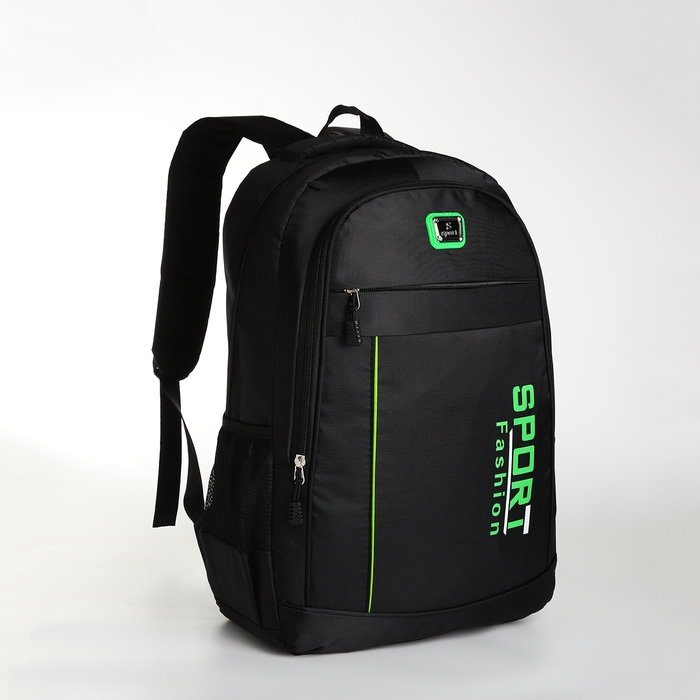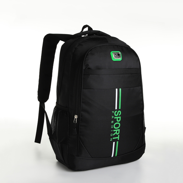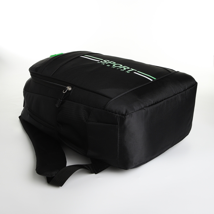 Рюкзак школьный на молнии, 4 кармана, цвет чёрный/зелёный