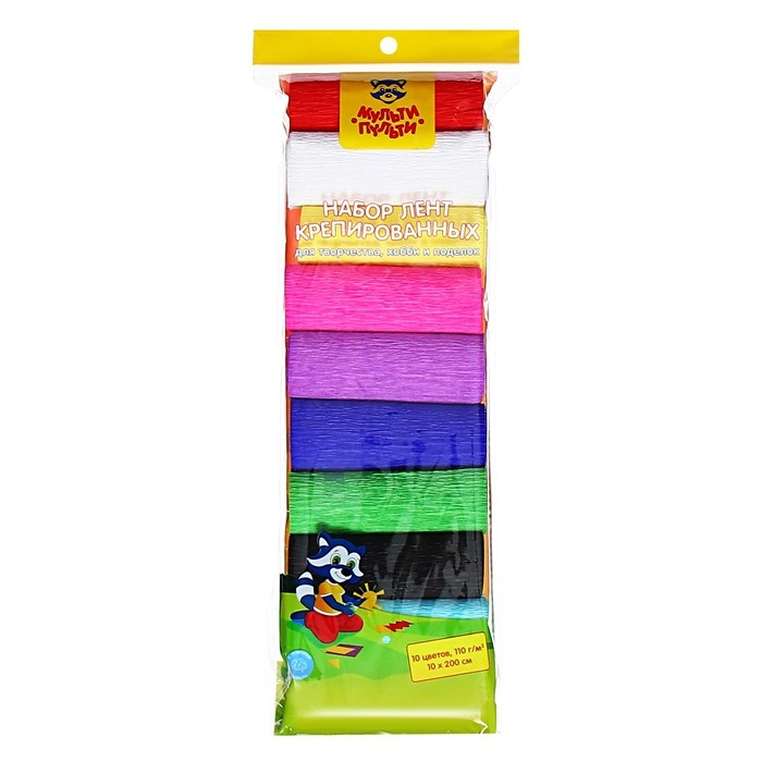 Набор крепированной бумаги, Мульти-Пульти «Енот в сказке», 10 цветов, в рулоне, 10 х 200см, 110г/м2