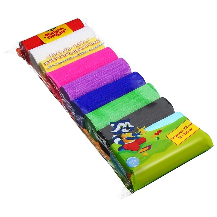 Бумага с крепированной поверхностью «Мульти-Пульти» серии «Енот в сказке» – это замечательный материал для творчества не только детей, но и взрослых. Товар представлен в наборе из 10 рулонов разных цветов.