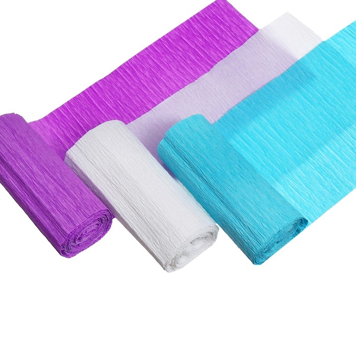 Бумага плотностью 110 г/кв. м имеет размер 10*200 см и растяжение до 140%. Более плотная фактура бумаги и большая способность к растяжению позволяет создавать объемные яркие поделки: цветы, платья для кукол и вызывает у детей большой интерес к творческому процессу.