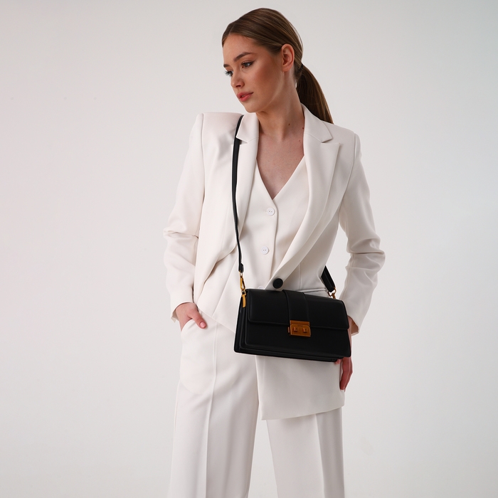 Чёрный цвет делает её универсальной для любого образа, будь то деловая встреча или прогулка по городу.