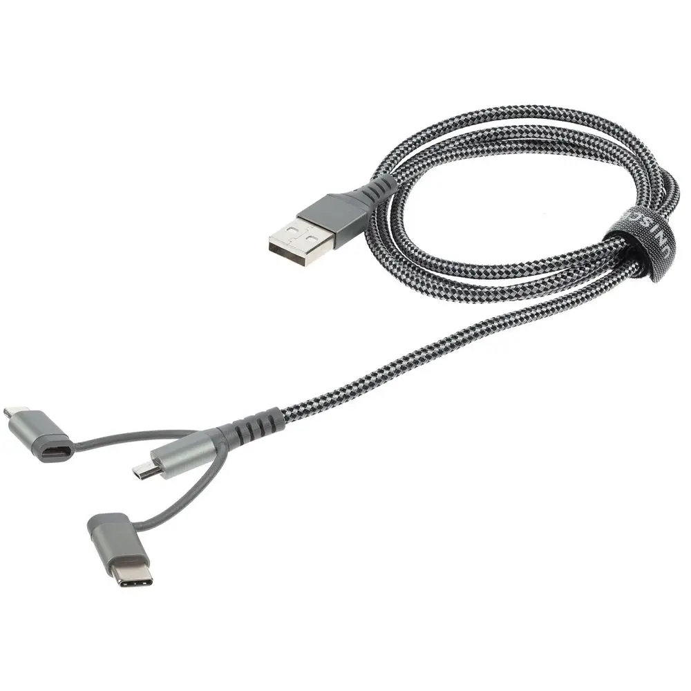 - Прочный кабель в текстильной оплетке выдерживает до 60 000 сгибаний и натяжение на разрыв до 70 кг