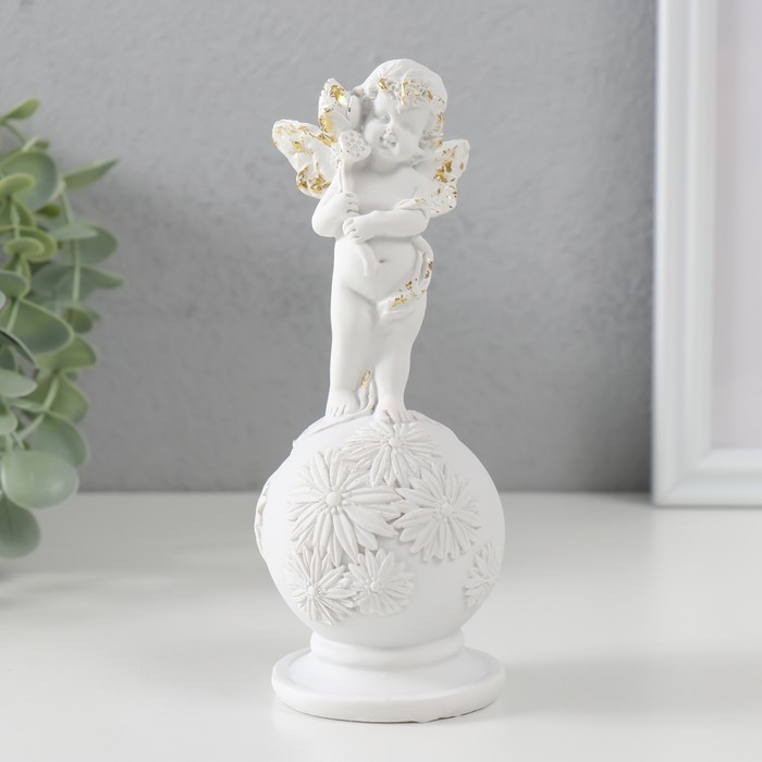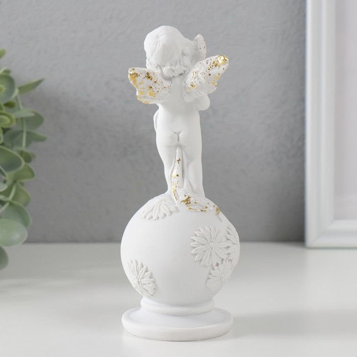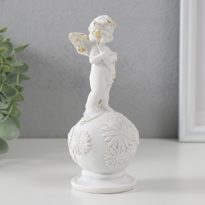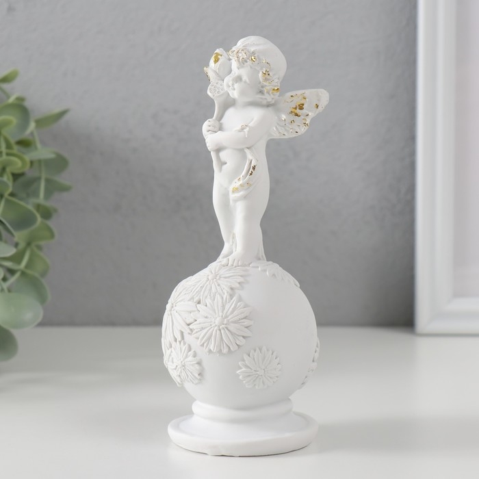 Сувенир полистоун "Белоснежный ангел на шаре с цветами" с золотом 16х6х6 см