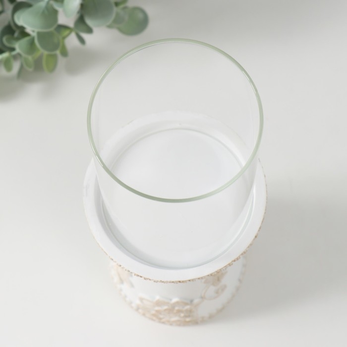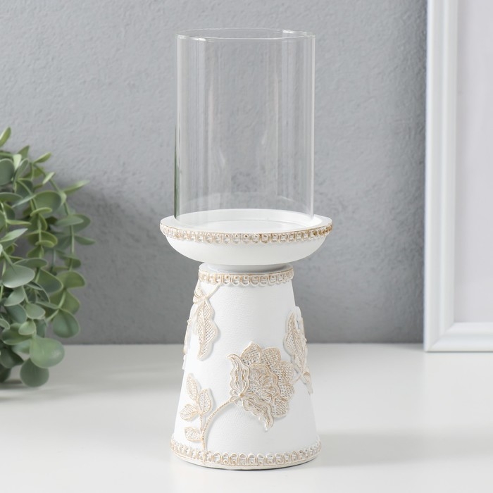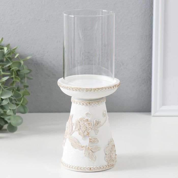 Подсвечник полистоун на 1 свечу "Цветение. Кружево" белая с золотой патиной 9,5х9,5х24,2 см 984823