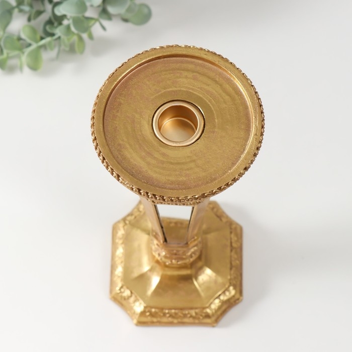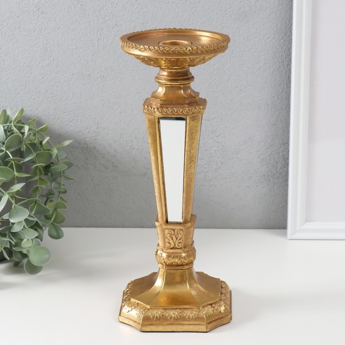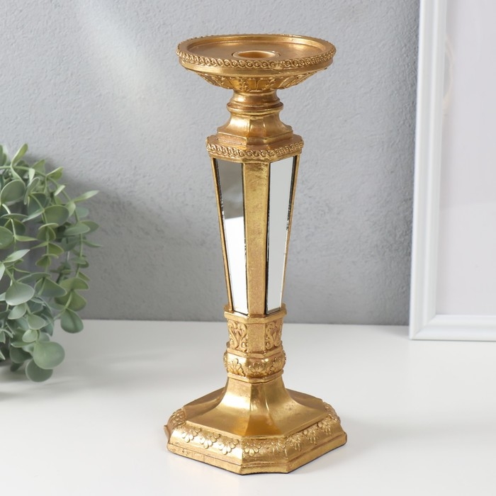 Подсвечник полистоун на 1 свечу "Зазеркалье" золото 10,7х10,7х26,4 см