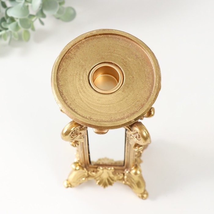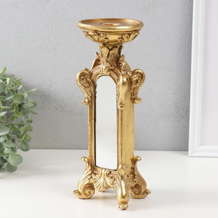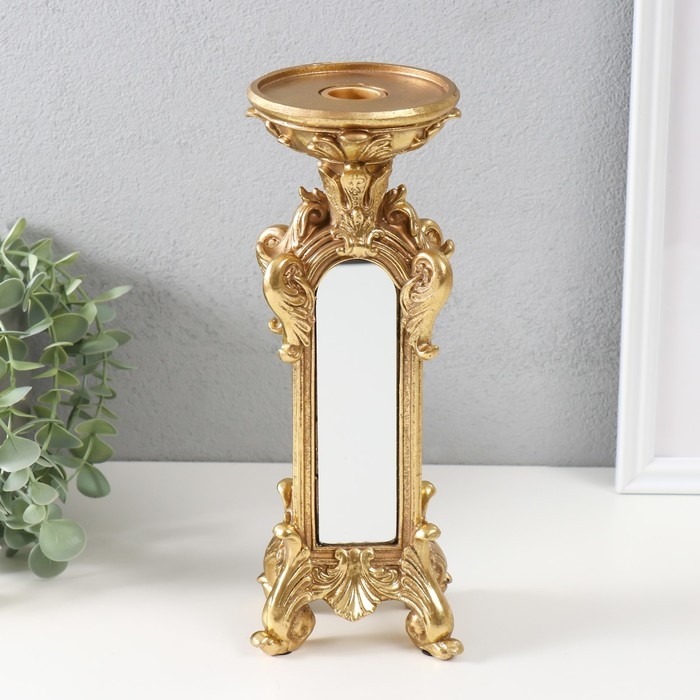 Подсвечник полистоун на 1 свечу "Империя" золото с зеркалом 9,5х7х26 см