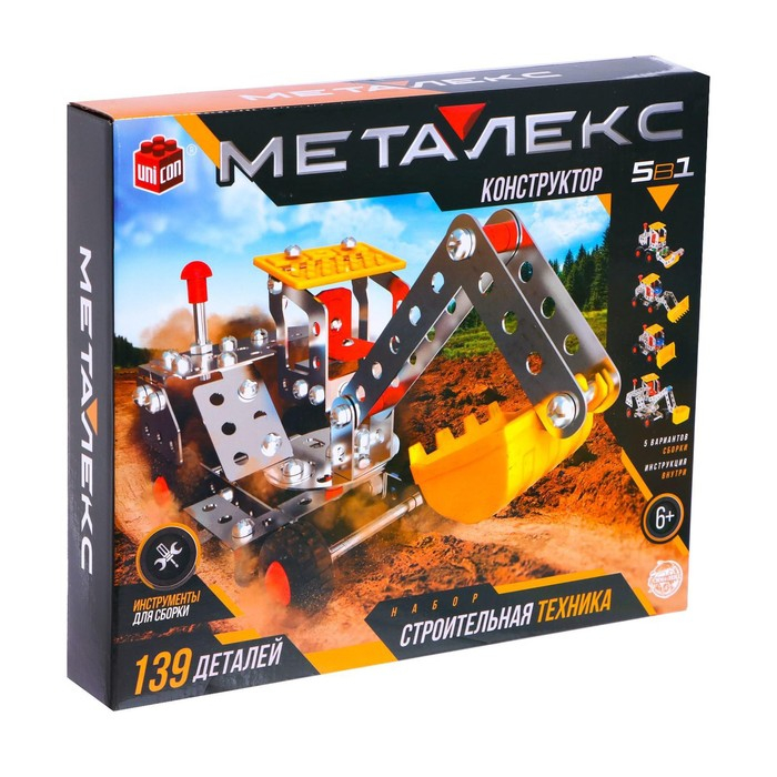 Конструктор металлический «Строительная техника», 5 в 1, 139 деталей