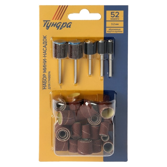 Набор мини-насадок для гравера ТУНДРА, абразивные круги и рулоны, 3.2 мм, 52 предмета