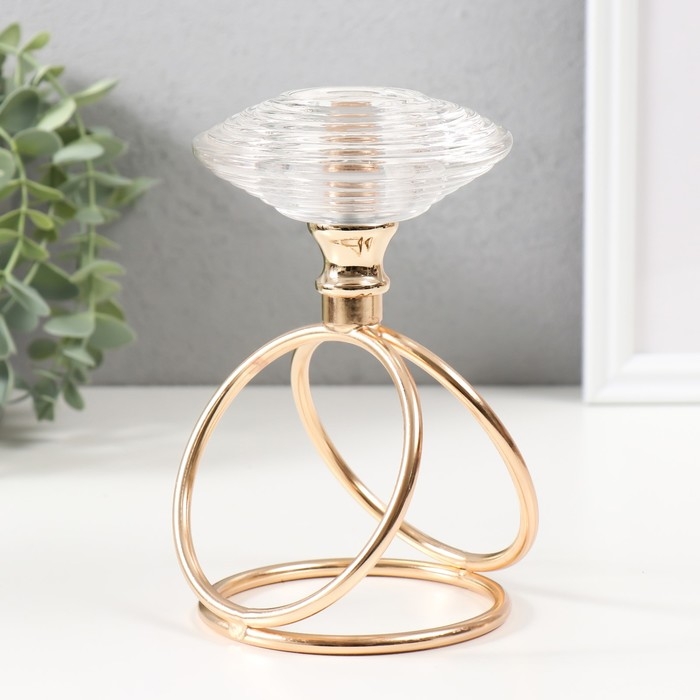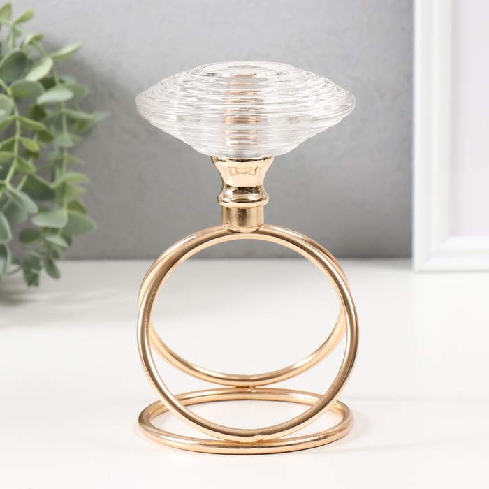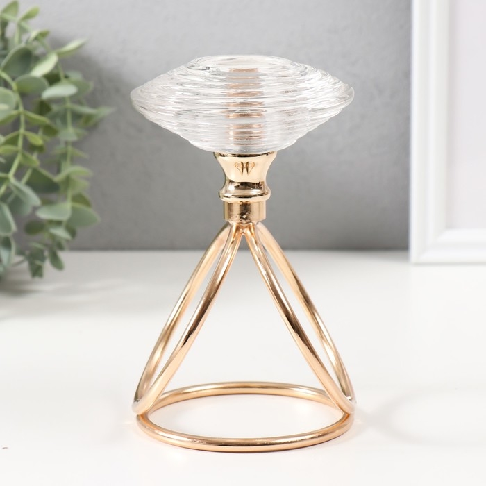 Подсвечник металл, стекло на 1 свечу "Иллюзия воды" d=3,5 см золото 10х10х17 см