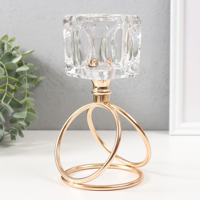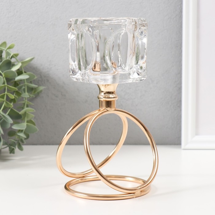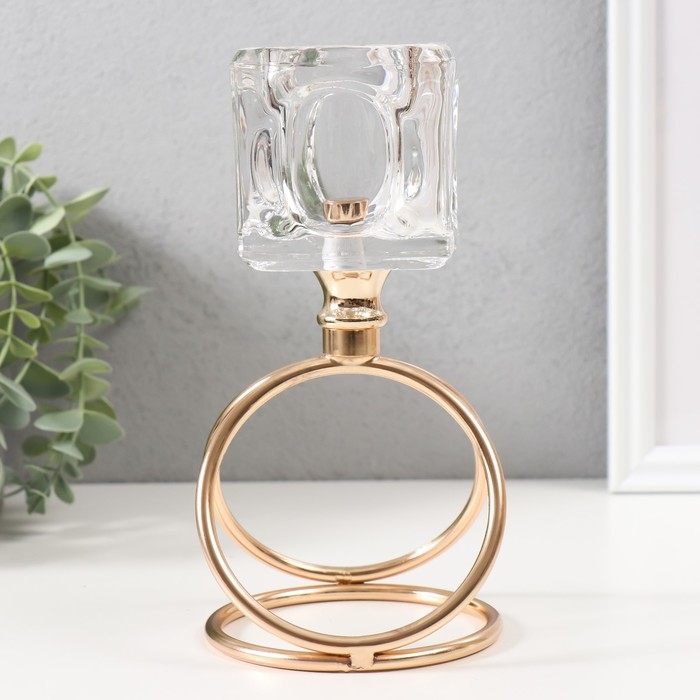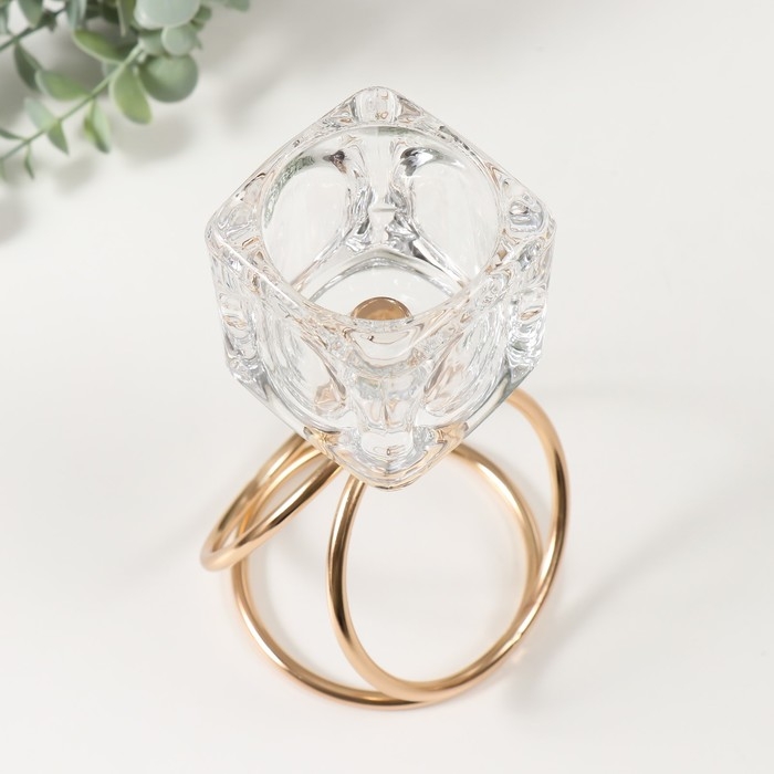Подсвечник металл, стекло на 1 свечу "Ледяной кубик" d=6 см золото 10х10х19 см