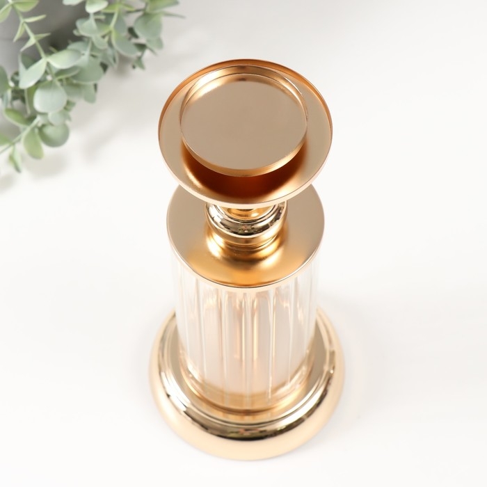 Подсвечник металл, акрил на 1 свечу "Колба" d=6 см золото 12х12х27 см