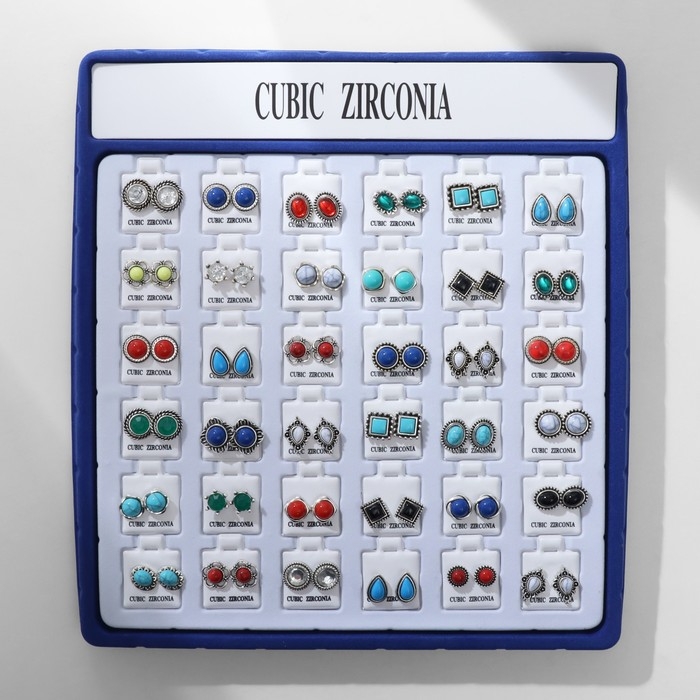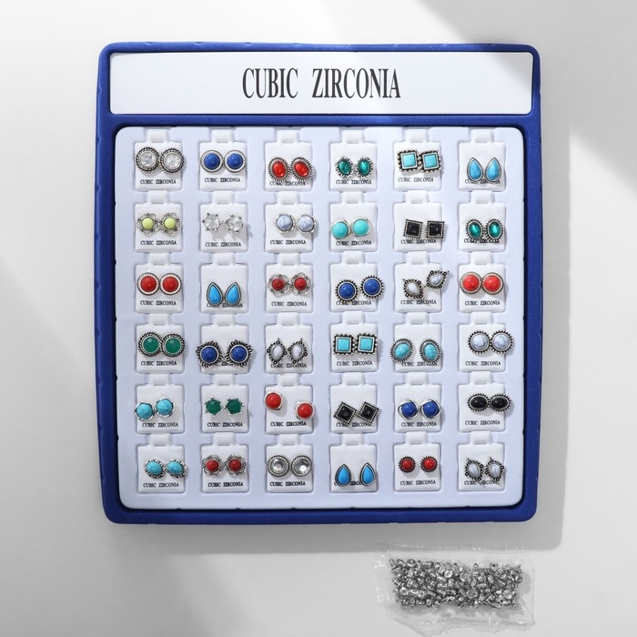 Пусеты в коробке 36 пар «Натурель», цвет МИКС в чернёном серебре